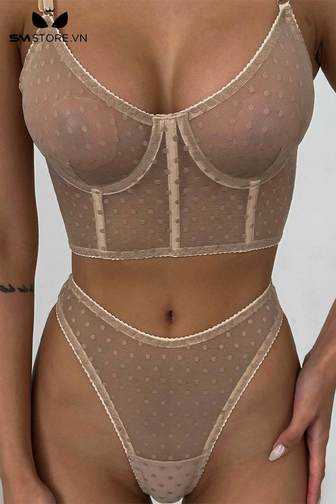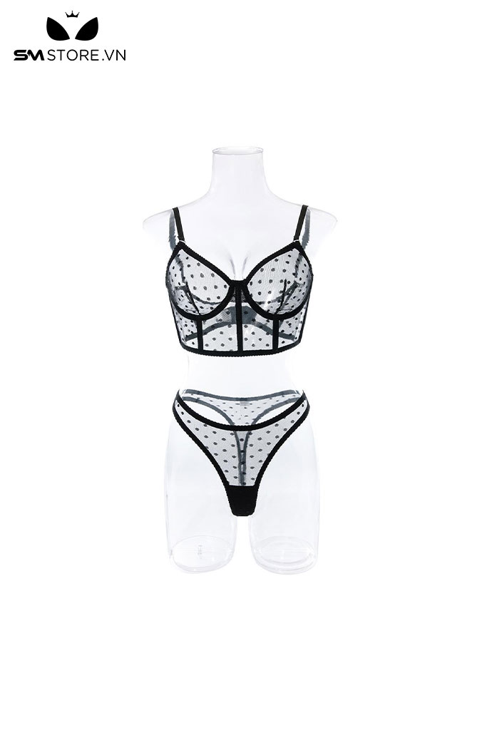 SMS431 - set lót nữ xuyên thấu và họa tiết chấm bi siêu mỏng