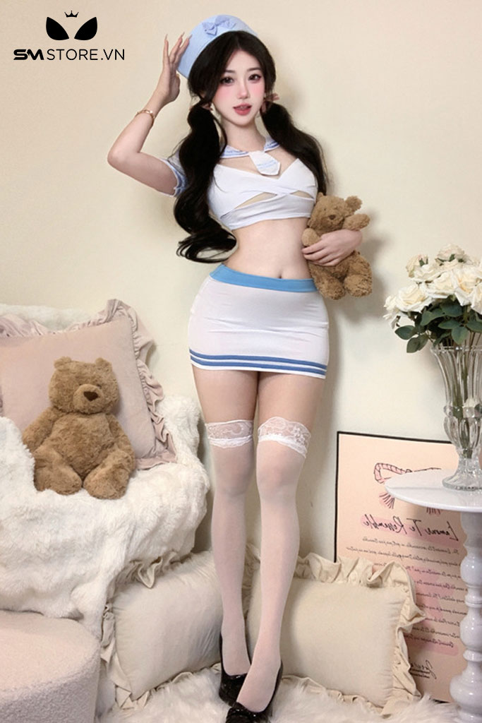 SMS651 - Cosplay tiếp viên ôm dáng với croptop ngắn tay và váy